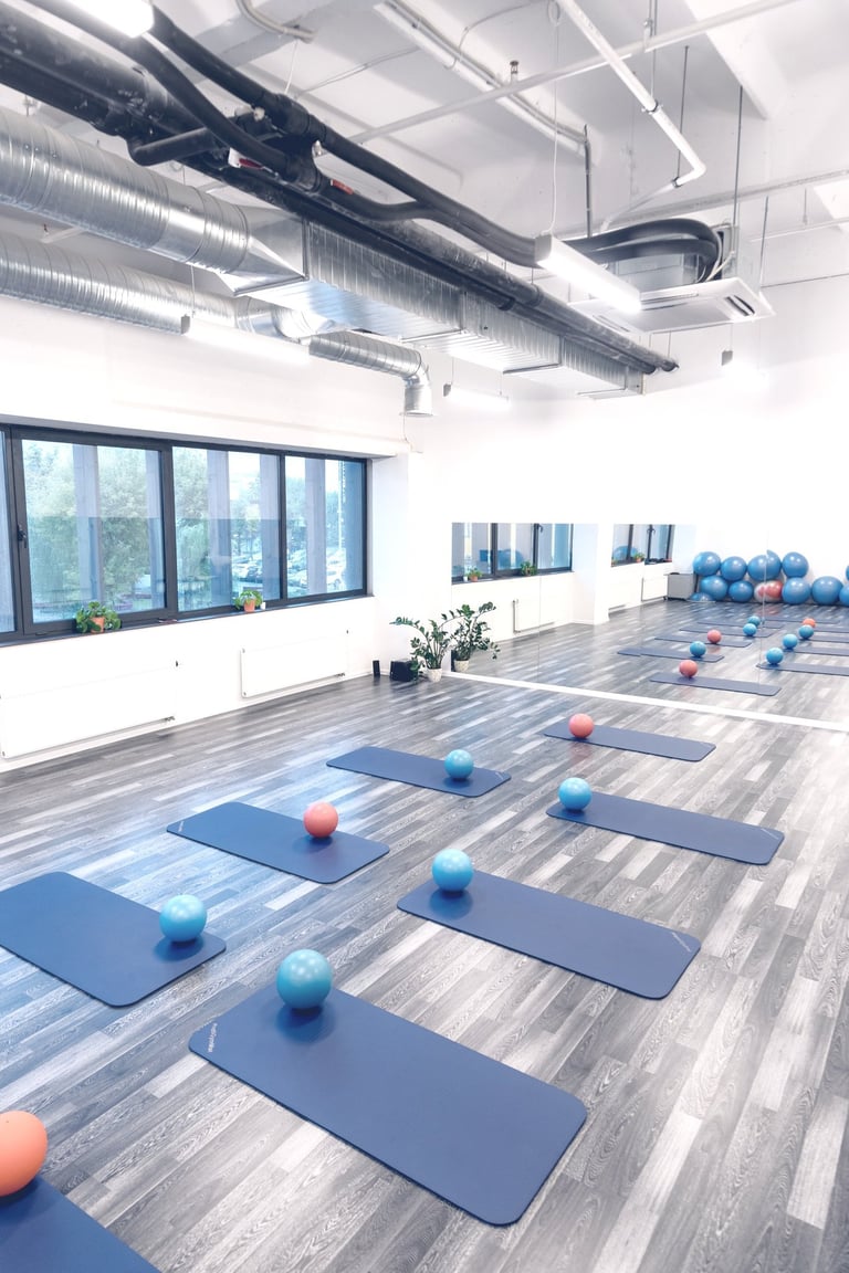 "Sportyje" galite pasirinkti norimą treniruotę grupėje: Pilates, "Sveika nugara", "Giliųjų raumenų", "Viso kūno" . Grupėje sportuoja iki 12 žmonių, kas garantuoja pakankamą trenerio - kineziterapeuto dėmesį ir kontrolę. Treniruotėse naudojame įvairias priemones maksimaliam rezultatui pasiekti ir pratimų įvairovei.